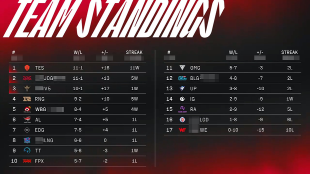 Bảng xếp hạng LPL Mùa Hè 2022 tính đến hiện tại